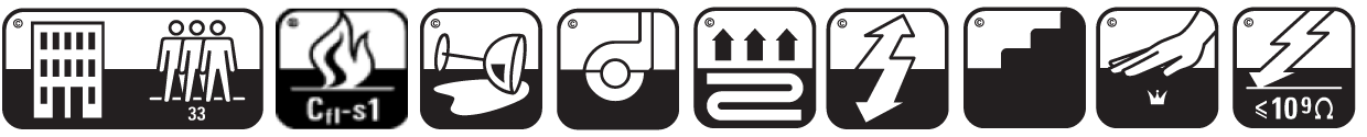 Smussavvisende. Lett å støvsuge. Tåler vann. Luv av 650 g/kvm polyamid som regnes som den beste syntetiske fiber. Har alle godkjenninger for off. bruk og er godkjent som fluktvei ved brann. Vegg til vegg teppet er rullefast med kompakt gummiert og sklisikker bakside, som isolerer ekstra mot kulde og støy. Teppet er velegnet til søm av tepper og løpere, kantet med tråd.