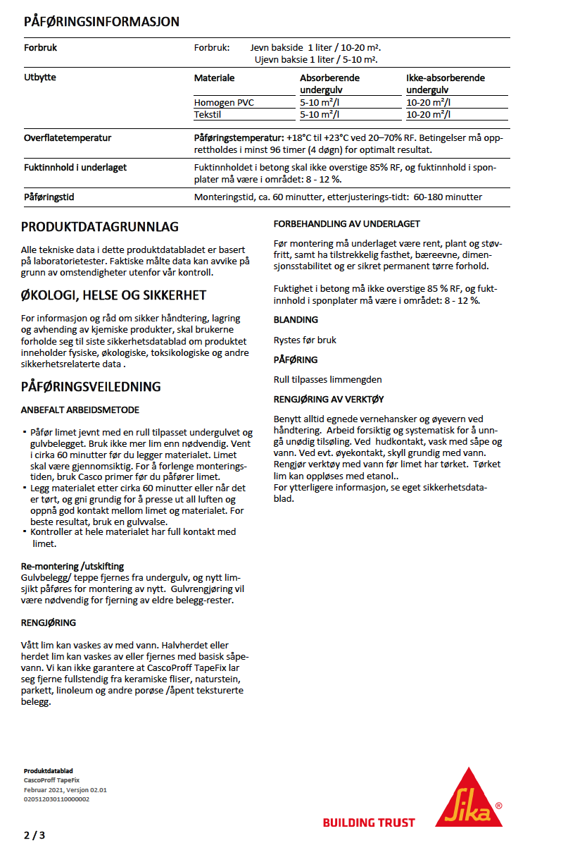 Casco Proff TapeFix er et teiplim som brukes til fixering av tepper og teppefliser. Fikseringen holder gulvbelegget på plass slik at det ikke glir, samtidig som det er lett å fjerne på grunn av den såkalte ”teiplimeffekten”. Egnet til bruk på de fleste underlag også på fuktbestandige underlag. Underlaget må være rent, tørt, jevnt og fast. Sparkle og slip ned eventuelle ujevnheter.