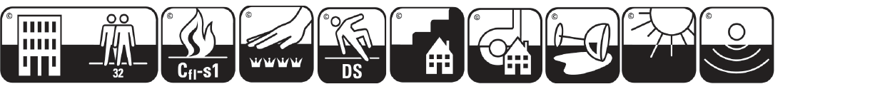 Meget slitesterk og lettstelt matte til inngangspartier for offentlig og privat bruk. Teppet har god oppsugingsevne og har en skjærefast, vannfast og vanntett bakside. Gummikant på begge sider. Brannklasse Cfl-S1.